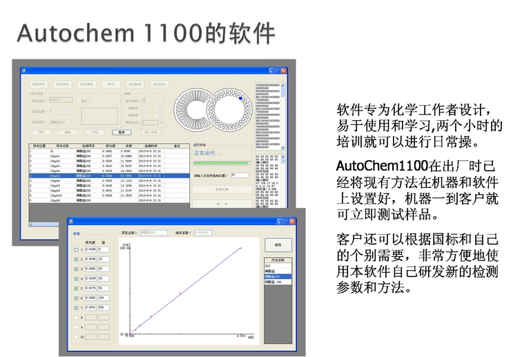 標準溶液:可以放置多達8個標準溶液,標準曲線可以保存并調(diào)用, 標準曲線可以線性回歸或多項式回歸處理