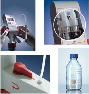 VITLAB continuous”數(shù)字滴定器,你可以進(jìn)行連續(xù)的滴定并得到可靠的結(jié)果,為您在這個過程中節(jié)省大量時間。獲得專利的雙活塞泵設(shè)計使得溶液得以持續(xù)測量無需重復(fù)灌裝。此外,這種創(chuàng)新技術(shù)大大提高了安全性,它的緊湊型結(jié)構(gòu)和低重心構(gòu)造極大地降低了液體泄露的風(fēng)險。排液管的長度和高度都可以調(diào)節(jié),使其可適用于各種高度的瓶子。獲得專利的回流閥設(shè)計具有兩大優(yōu)點:防止貴重試劑的損失和液體飛濺。另外還具有簡單易用的校準(zhǔn)功能。誤差全部都在德國DIN EN ISO 8665-3標(biāo)準(zhǔn)要求的范圍內(nèi)。