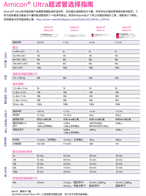 • Amicon Ultra超濾管滿足從0.5-15mL樣本的處理