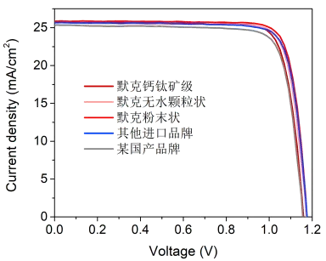 在實(shí)際測試的過程中,使用默克純度為99.999%的碘化鉛材料(貨號203602),相對于其他品牌的材料,轉(zhuǎn)換效率(PCE)的提升可高達(dá)1%。與其他進(jìn)口品牌相比,該產(chǎn)品的實(shí)際器件表現(xiàn)同樣占據(jù)明顯的優(yōu)勢。