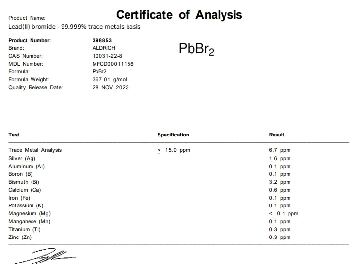 上海恒奇攜手Sigma-Aldrich®致力于讓科研與產(chǎn)業(yè)工作者使用高品質(zhì)的材料,推進(jìn)鈣鈦礦行業(yè)高質(zhì)量發(fā)展。高純金屬鹽是默克(Sigma-Aldrich®)長久以來的明星產(chǎn)品。