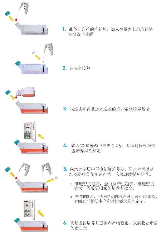CELLine 的二室培養(yǎng)技術(shù)。使用者可以循環(huán)收獲產(chǎn)品,更換培養(yǎng)基。達(dá)到長期連續(xù)培養(yǎng)的目的。