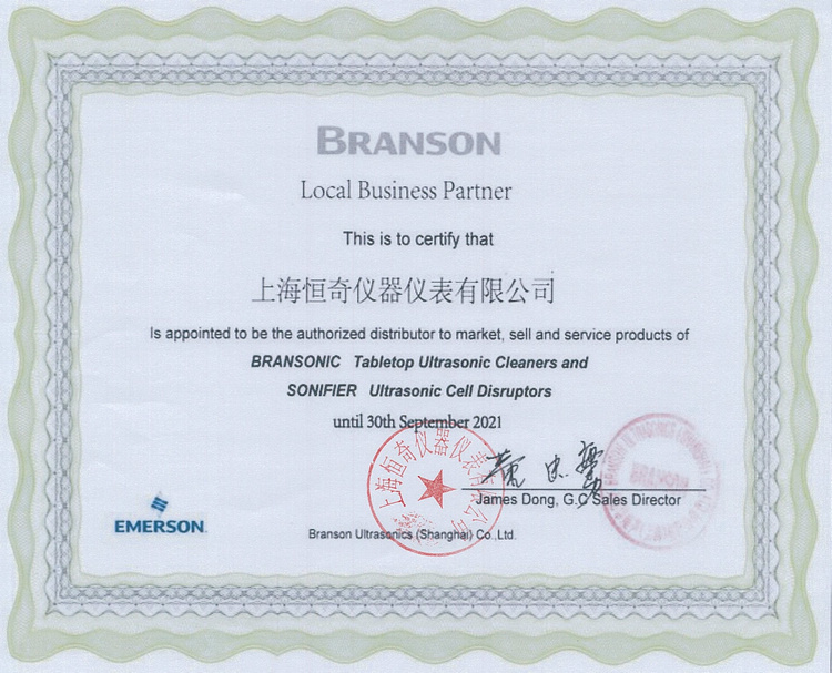 BRANSON必能信公司對(duì)恒奇儀器公司高度的認(rèn)可