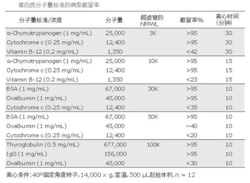 截留分子量選小啦!看到這個表,你是否發(fā)現(xiàn)原來抱怨Millipore超濾管流速偏慢的根源來自對于Millipore截留分子量定義的誤解。膜孔徑要小于目的分子這是第一原則。如果分子有近似球形的立體結構(而非明顯的線性分子),在Millipore再生纖維素超濾膜體系內(nèi),選擇“等于”或“略小于”目的分子的截留分子量的超濾管是最佳選擇,這樣操作起來又快又好,既保證了樣品回收率,又縮短了離心時間,大幅降低大分子損傷風險。