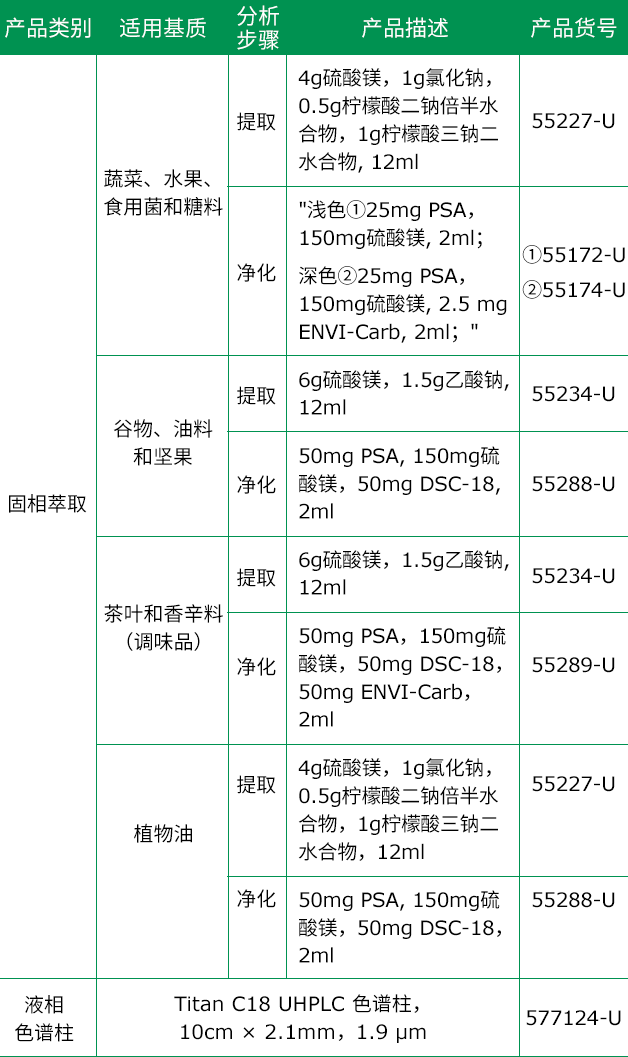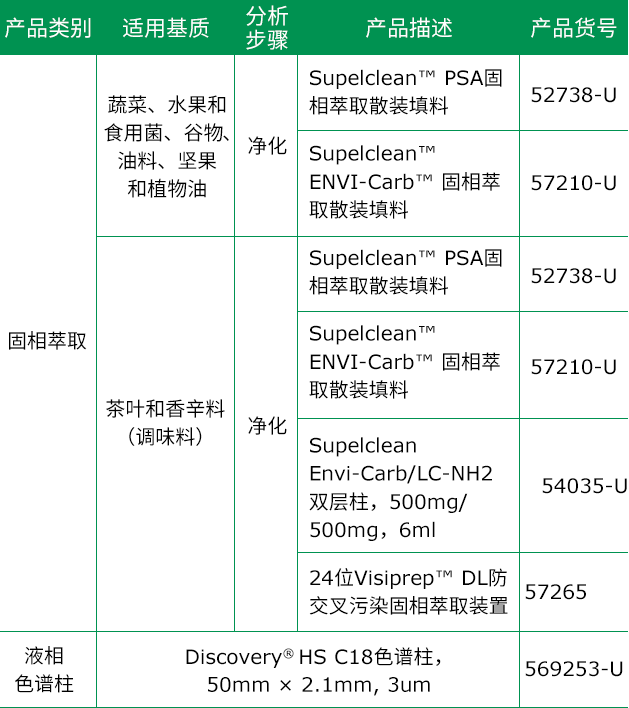伴隨著GB 2763限量標(biāo)準(zhǔn)一起更新的,還有4個(gè)GB 23200系列的農(nóng)殘檢測方法標(biāo)準(zhǔn)。新標(biāo)準(zhǔn)實(shí)施在即,默克集合了Supelco®和Millipore®兩大品牌下的優(yōu)勢產(chǎn)品,針對新的檢測方法進(jìn)行了梳理,整理出了方法中所用到的試劑、樣品前處理,色譜分離耗材、分析標(biāo)準(zhǔn)物質(zhì)等耗材,旨在為食品農(nóng)殘分析提供全面的解決方案;助力食品檢測,確保檢測結(jié)果的精準(zhǔn)性、準(zhǔn)確性和一致性。