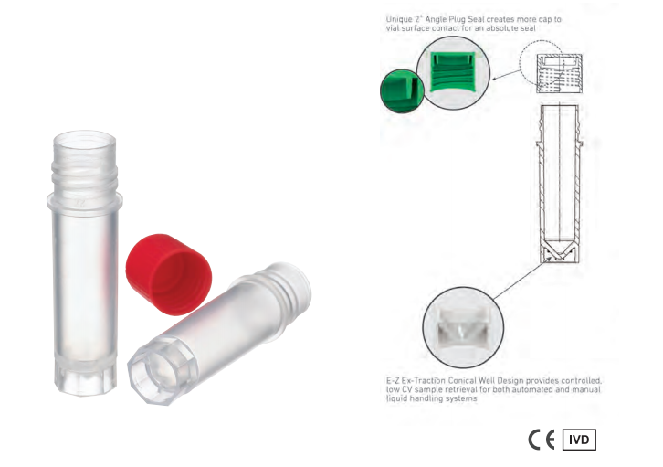 瓶蓋密封性遠(yuǎn)超了DOT和IATA法規(guī)標(biāo)準(zhǔn),確保了在運(yùn)輸和嚴(yán)苛的冷凍解凍處理過程中對樣品的保護(hù);